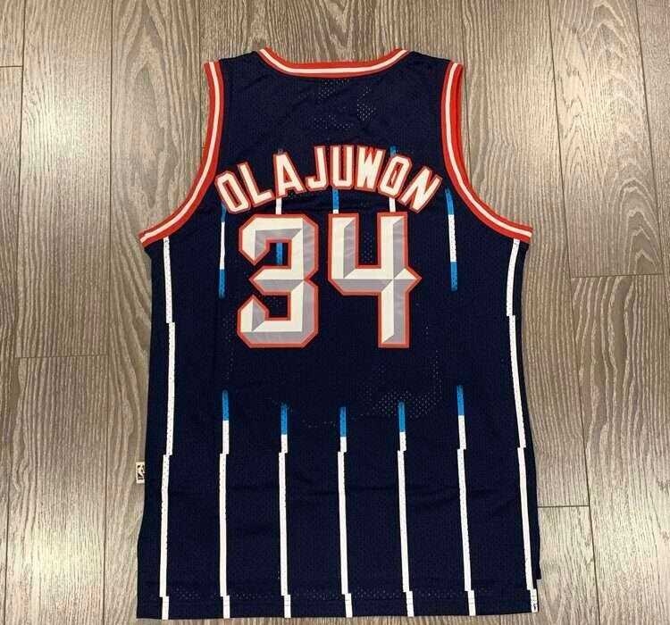 Be the first to review “Hakeem Olajuwon Houston Rockets #34 Retro Navy Pinstripes”